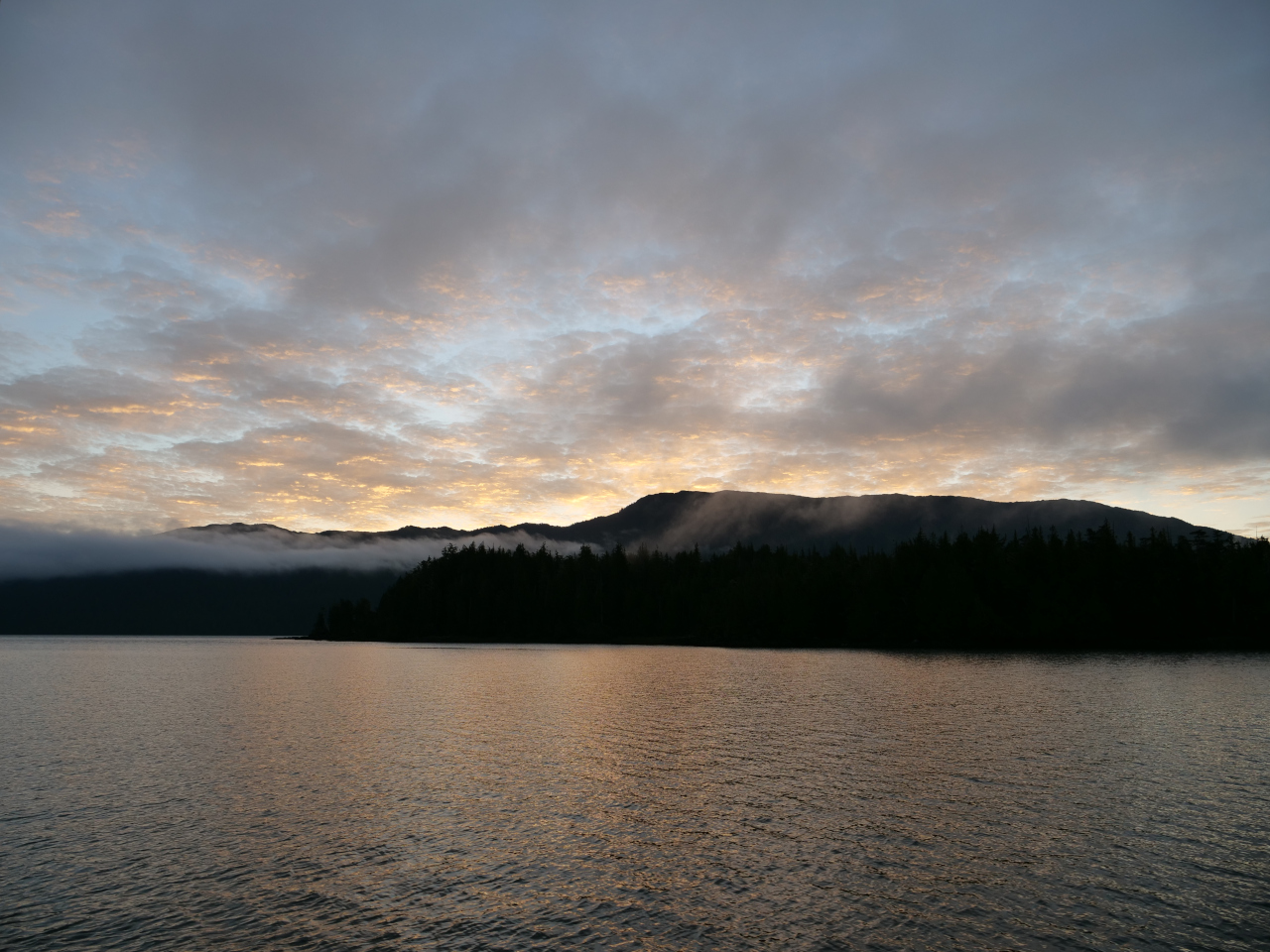 In Ketchikan wir legen so früh es geht bei dichtem Nebel unter Radar ab. Die Sicht wird einige Stunden später besser. Die Uferlandschaft links und rechts mit ihren schmucken teilweise auf Pfählen aufgestellten Häuser erfreuen uns. Sogar einige Sonnenstrahlen finden den Weg zu uns. Abends ankern wir ein letztes Mal in Alaska, ganz nahe der kanadischen Grenze, im Lincoln Channal. Bis heute streiten sich USA und Kanada ob der definitiven Grenze. Der Ankerplatz ist sicher, nicht besonders idyllisch, bringt uns jedoch am nächsten Morgen vorbei an der Metlakatla Bay durch die pittoreske enge und stark strömende Venn Passage nach Prince Rupert.