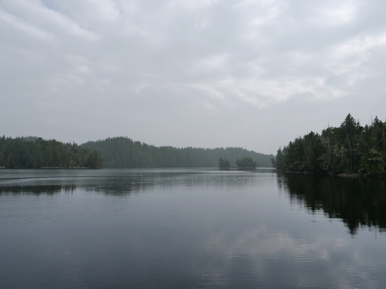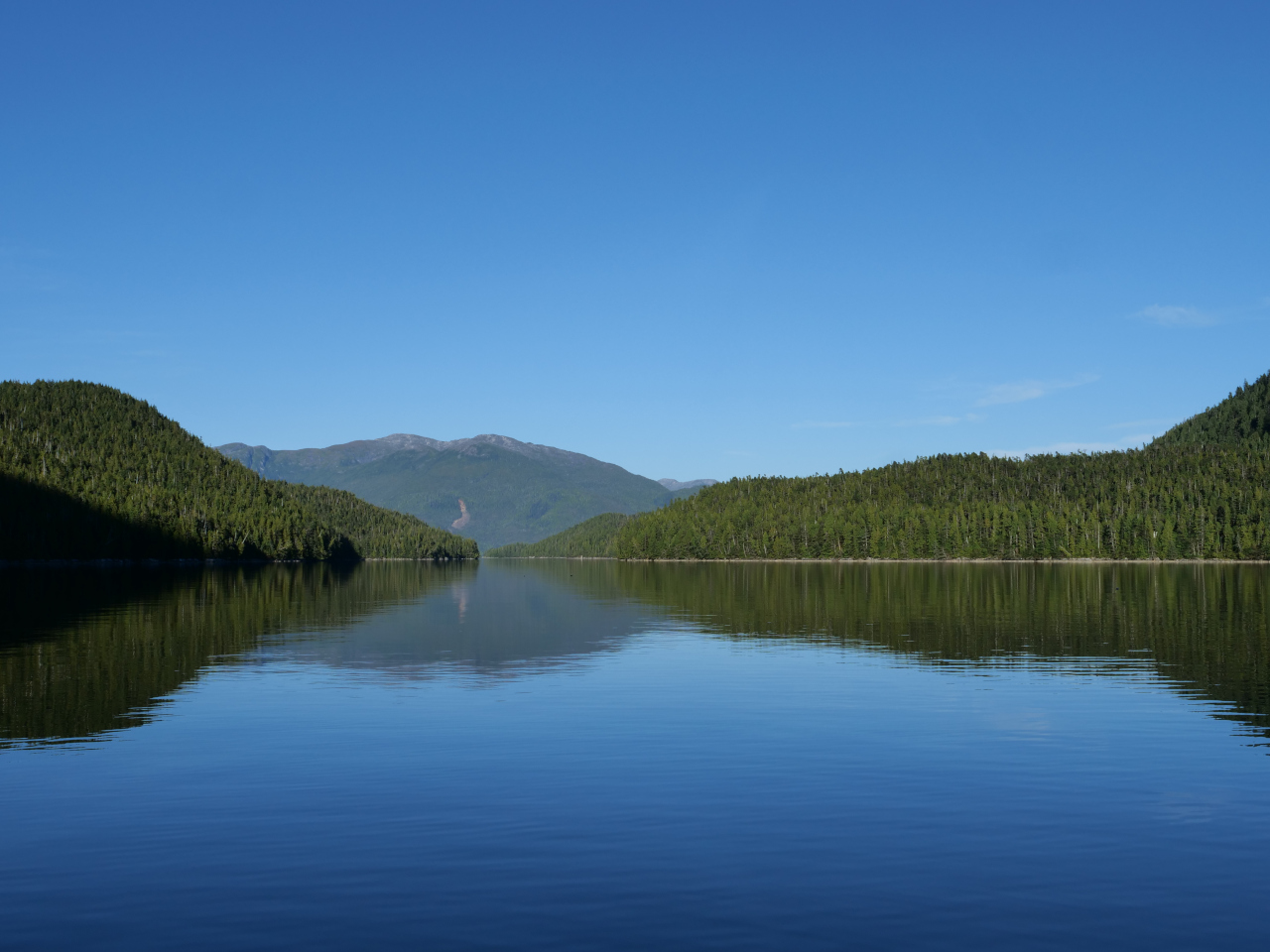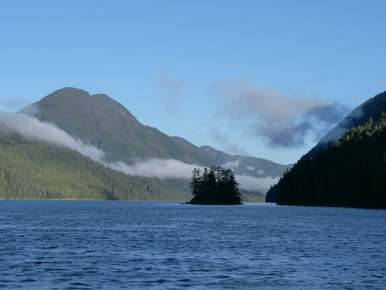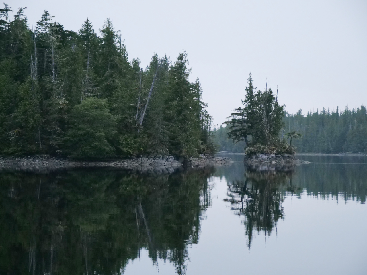 Die erste Nacht in Kandada verbringen wir mit einem Motorboot und einem Fischerboot im Lawson Harbor/Kelp Passage. Täglich geht es weiter durch den Grenville Channel bis dieser sich mit dem Douglas Channel und dem Whale Channel kreuzt und wir einen nächsten geschützten friedlichen Ankerplatz hinter einer kleinen Insel finden. Den Princess Royal Channel passieren wir als nächstes. Beidseits dicht bewaldet, mit vielen Wasserfällen gespickt setzen wir unsere Reise fort. Oft liegt dichter Morgennebel. Es wird langsam Herbst und die Tage werden kürzer. Dort wo Laubbäume zu finden sind erscheinen die ersten wunderschönen Herbstfarben. Hat sich der Nebel/Dunst aufgelöst ist Wetter schön. Vorbei rauschen wir (manchmal) an 1001 Inselchen und Felsen in verschiedensten Formationen, oft spriessen aus den Felsen ein paar (vorwitzige) Tannen. Fitz Hugh Sound folgt als nächster bevor wir eine kurze Strecke gegen den offen Pazifik queren. Gerade dort erwischt uns ein Tief mit Starkwind. Unsere ausgewählte Ankerbucht bietet jedoch hinter den verwinkelten Inseln wunderbaren Schutz und wir liegen ruhiger als in mancher Marina.