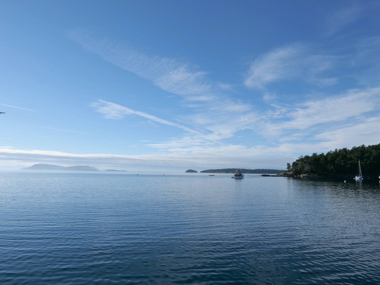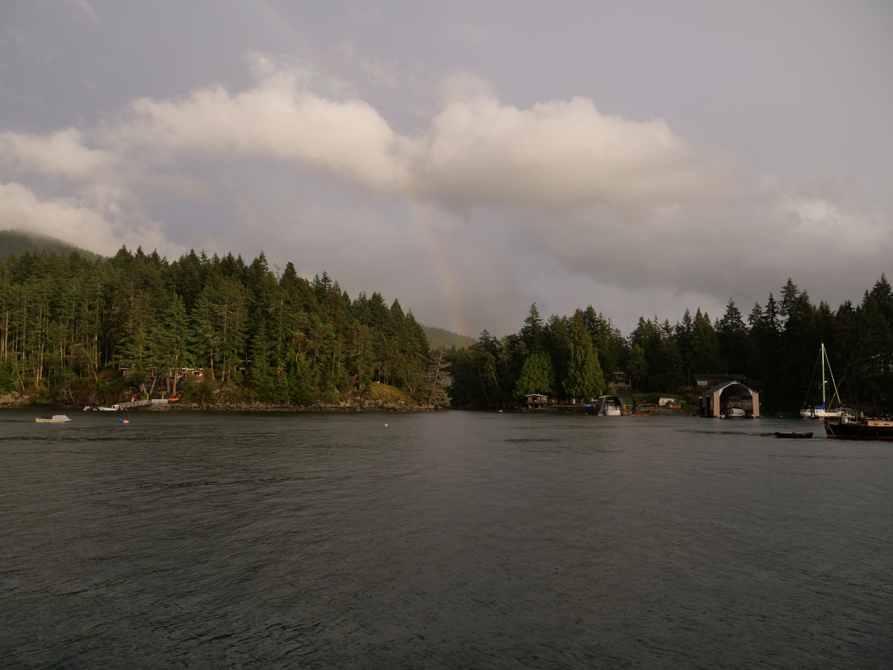 Laut Wetterbericht zieht in zwei Tagen ein starkes Tiefdruckgebiet vorbei mit Böen bis 50 kn und dies in der Strait of Georgia, draussen im Pazifik sind es mit Sicherheit einige Knoten mehr. Die Bargain Bay, westlich von Edgecombe Island erscheint uns eine gute Lösung um abzuwettern. 4 Tage bleiben wir in der geschützten Ecke bei Wind und Regen. Es gibt jedoch auch sonnige Abschnitte die wir sehr geniessen. Nun hat sich das Wetter so weit beruhigt, dass wir die letzten drei Etappen bis Bellingham in Angriff nehmen können. Plumper Bay, der letzte kanadische Ankerplatz. Wir melden uns beim kanadischen Zoll telefonisch ab und betreten nun Washington State. Auf der Sucia Island in der Shallow Bay zu den wunderschönen San Juan Islands gehörend, ankern wir ein letztes Mal (und ein erstes in Washington) bevor wir die letzte Strecke bis zum Squalicum Harbor in Bellingham segeln.
